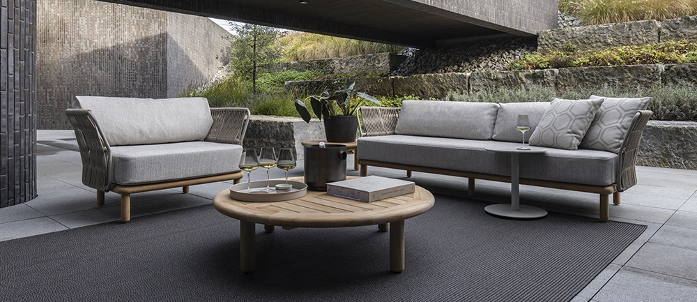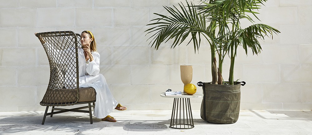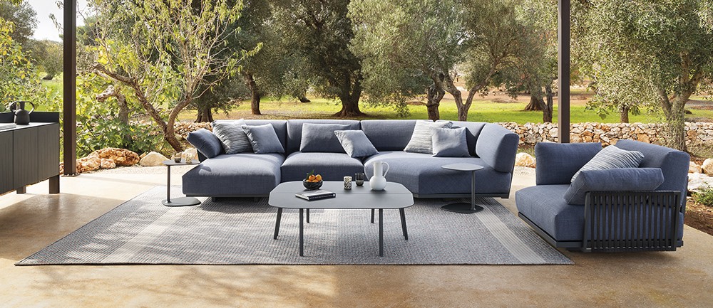 Technische knowhow en esthetische gevoeligheid gaan samen in de nieuwe collectie Baia van Ethimo, ontworpen door Christophe Pillet. Zachte kussens rusten op een basis van met stof beklede panelen. Kleine details zorgen voor de finishing touch: een fijn streepjesmotief voor het daybed of een strook leer in de armleuning van de sofa’s. Robuustheid en zachtheid gaan hand in hand.