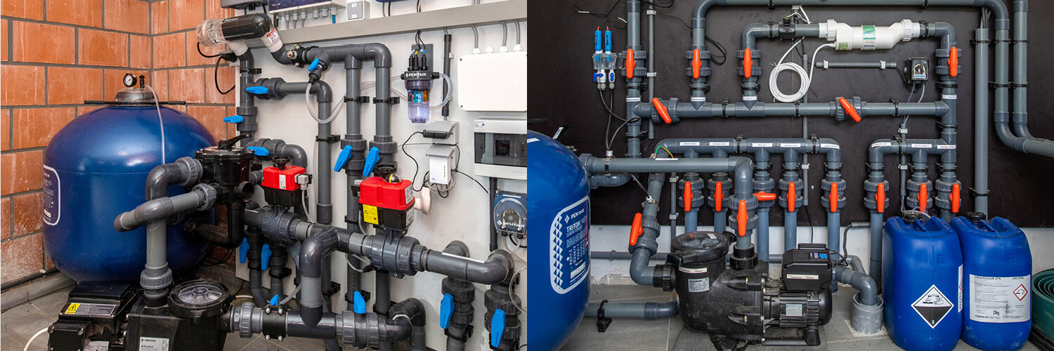 De technische ruimte is de plaats waar alle nodige pompen, filters en sturingen zijn voorzien. Hier wordt de waterkwaliteit van je zwembad gemonitord en bijgestuurd. De plaatsing van de technische ruimte is van cruciaal belang. Deze moet zo dicht mogelijk bij je zwembad zijn zodat de leidingen niet eindeloos lang worden. Er moet voldoende elektriciteit aanwezig zijn om de installatie te laten draaien, zeker als je eraan denkt een warmtepomp te installeren. Deze ruimte moet zeker vorstvrij zijn, dus denk aan isolatie of eventueel een automatische vorstbeveiliger. Belangrijk is ook een mogelijke aanwezigheid voor afvoer van water. Dit zal de keuze van je filter bepalen. Bevindt de technische installatie zich in de kelder (en niet in een poolhouse) dan moet je sowieso een waterafvoer voorzien voor als het eens misgaat! Hou er rekening mee dat wanneer een technische installatie zich lager dan het zwembad bevindt, de jaarlijkse kosten zullen stijgen omdat er meer hoogte overbrugd moet worden voor de watercirculatie. Als laatste moet de ruimte ook voldoende groot zijn. Niet alleen voor de pompen en filters, maar ook voor verplichte onderdelen zoals de lekbakken of een eventuele breektank.