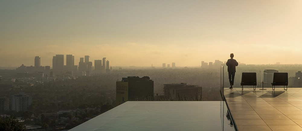 Vanuit een infinitypool genieten van een adembenemend uitzicht over Los Angeles, met panoramische vergezichten die zich uitstrekken van de San Gabriel Mountains tot de Stille Oceaan … Het spreekt tot de verbeelding. Niet alleen de twee zwembaden, die samen bijna het volledige terras omzomen, maar ook de bijzonder riante woning werd ontworpen om optimaal te kunnen genieten van de unieke omgeving. Dit kan bovendien in alle luxe, ook met grotere gezelschappen die hier in stijl ontvangen worden.