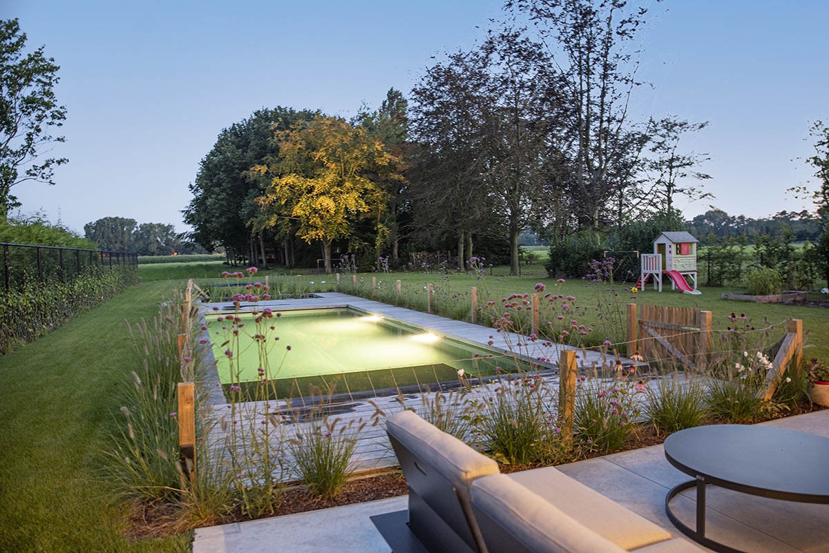 Bij dit nieuwbouwproject straalt de woning al een high-end allure uit. Plantarbor, als specialist in vijverbouw, zorgde ervoor dat het vijverontwerp hier niet voor onderdoet. Er is gekozen voor antraciet folie om op zonnige dagen een zwembadgevoel te creëren, en dat is goed gelukt! Dankzij het heldere water en de duidelijke scheiding tussen zwem- en filterdeel, benadrukt de vijver zijn luxe uitstraling. De uitstekende afwerking en de soepele communicatie met het Plantarbor-team hebben ervoor gezorgd dat de klanten uitermate tevreden zijn met hun keuze. Bovendien biedt Plantarbor ook na-service, waardoor klanten volledig worden ontzorgd.