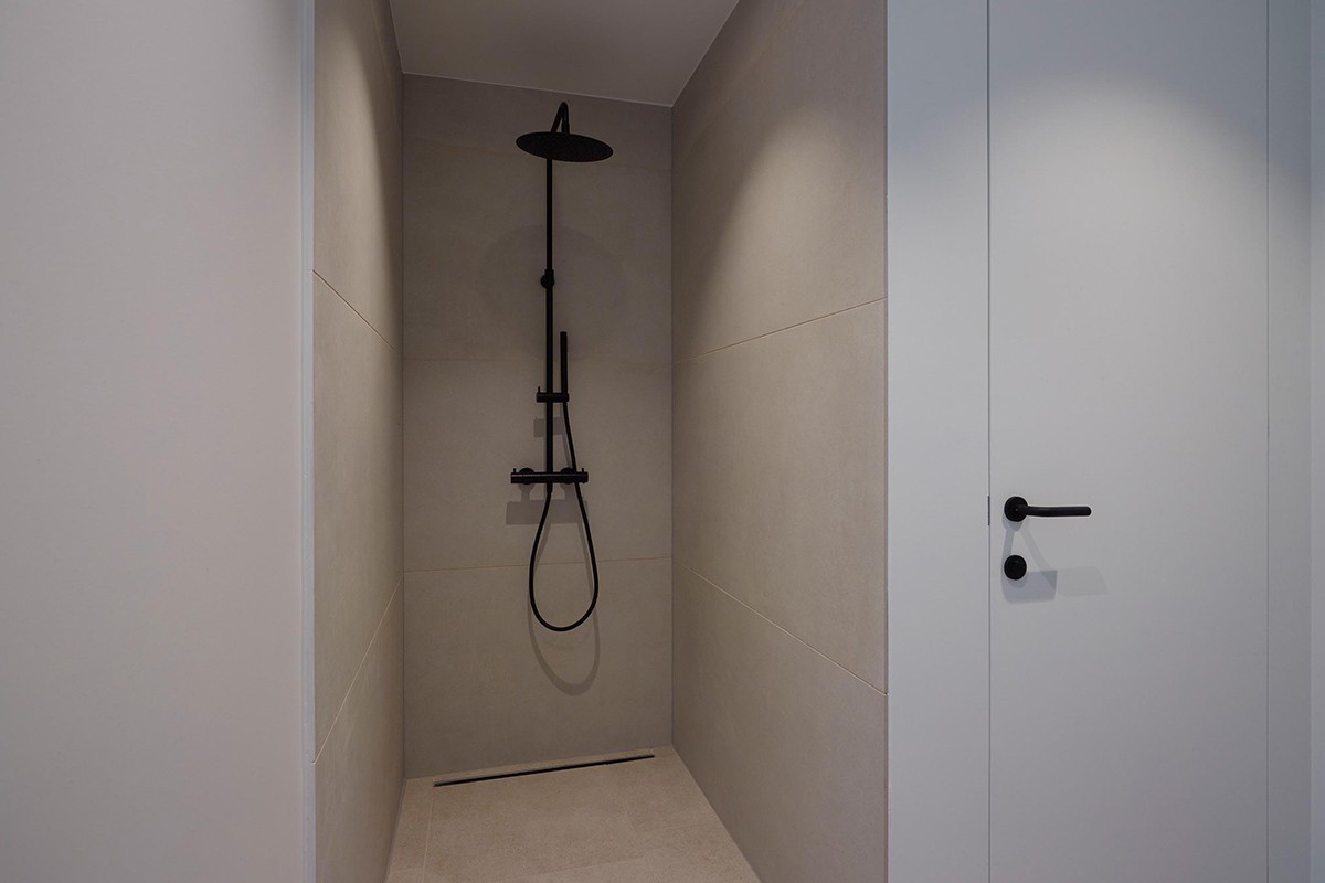 De materialen zijn zorgvuldig gekozen: houtskeletbouw vormt de basis, afgewerkt met crépi muren en aluminium ramen die het minimalistische karakter onderstrepen. Binnen werd gekozen voor grote tegels en een strakke lijnvoering, wat rust en luxe uitstraalt. Het geïntegreerde buitenmeubilair en de overdekte loungehoek maken dit poolhouse tot een plek waar comfort en design elkaar ontmoeten.