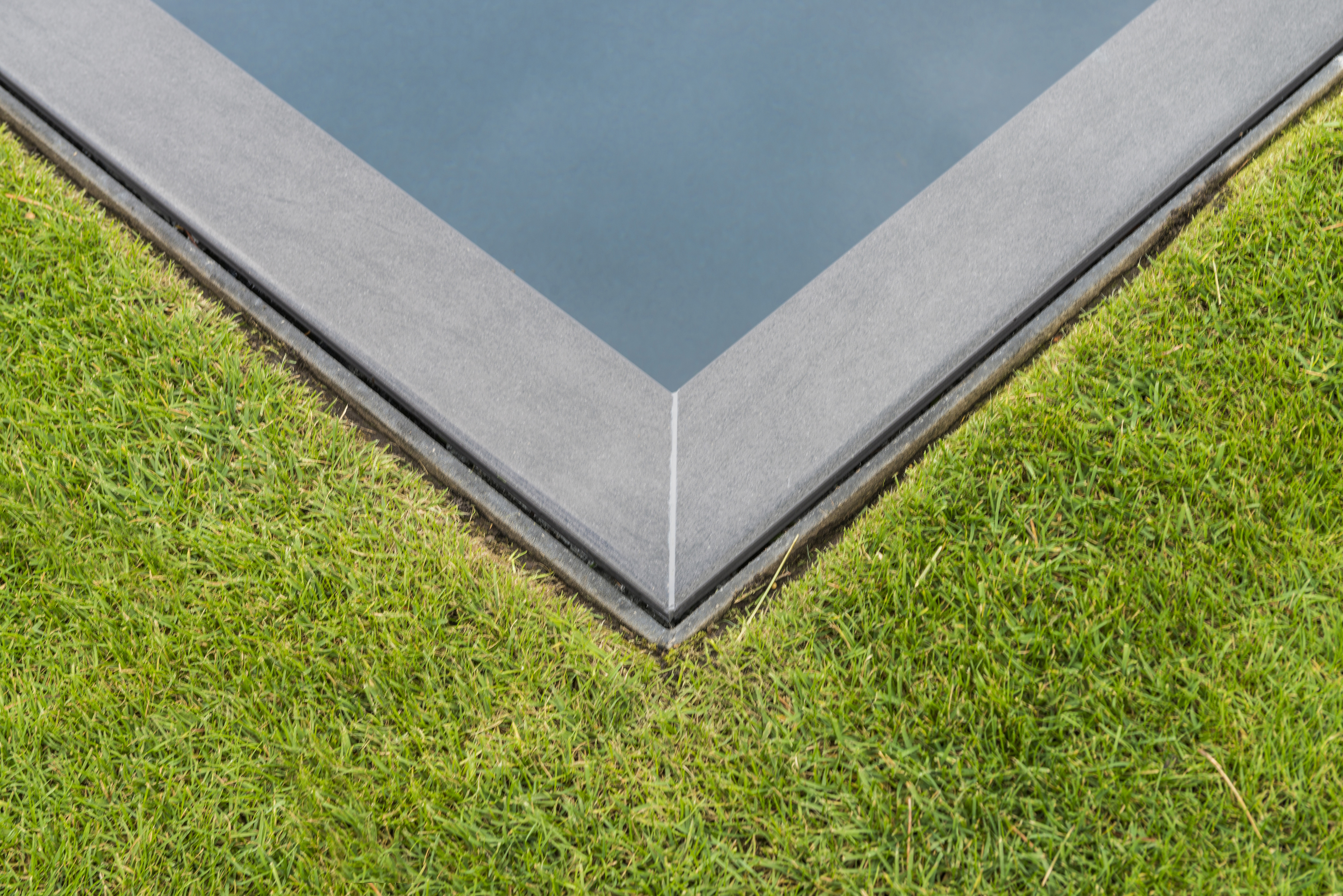 De eigenaar wilde absoluut een zwemlengte van 25 meter. Door het bad smal en donker van kleur te houden oogt het erg strak en straalt het de nodige rust uit. De boordafwerking is uitgevoerd in Ceratop zwart. Over de volledige breedte van het overloopzwembad is een trap aangelegd. Opvallend is dat de betonnen kuip werd bekleed met swimfinish. Dat is een zwembadbekleding die men op de muren (wanden) spuit.