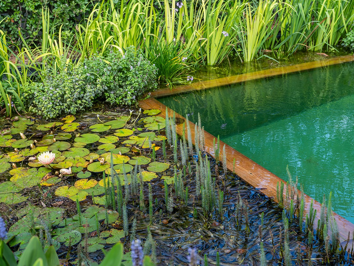Deze zwemvijver is een prachtig voorbeeld van ecologisch en technisch evenwicht. Met een Biotop-systeem dat zorgt voor natuurlijke filtratie en helder water zonder chemicaliën, combineert het project innovatie met esthetiek. De hellende bodem, de regeneratiezone met klei en waterplanten, en de boord die deels uit cortenstaalprofielen en deels uit natuurstenen tegels bestaat, zorgen samen voor een geheel dat naadloos opgaat in de tuin. Een hedendaags ontwerp dat rust, natuur en technologie verenigt.