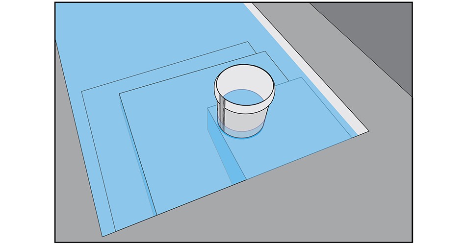 Naast deze eerste indrukken kan je ter plaatse ook enkele duidelijke vaststellingen doen die helpen inschatten of er sprake is van een lek. Zo kunnen zichtbare barsten of scheuren in de structuur wijzen op een probleem. Ook afwijkingen in de afdichtingslaag of luchtbellen bij de inspuiters kunnen een teken zijn dat er iets mis is. Eveneens zijn er in de technische ruimte soms signalen te vinden, zoals een pomp die onverwacht uitschakelt of een plas water die zich onder de installatie bevindt. Als je op basis van al deze waarnemingen vermoedt dat er iets mis is, kan je zelf al een eenvoudige test uitvoeren: de emmer-test.
