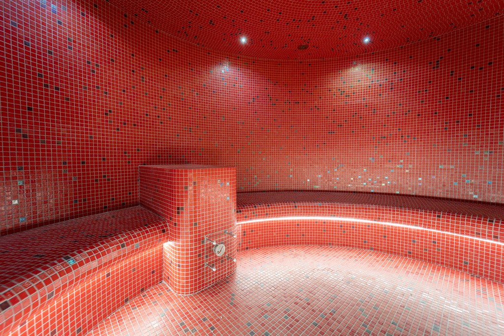 De Finse sauna van Alpha Wellness Sensations heeft een grote glazen voorwand om een open sfeer te creëren. De specifieke bankopstelling heeft een stuk dat opklapbaar is, zodat hier ook rolstoelgebruikers kunnen genieten van een deugddoende warmtesessie. De inrichting is uit vurenhout met traditionele saunalampen. Het stoombad ademt een Oosterse sfeer uit met de ronde vorm en rode mozaïektegels. Met de indirecte verlichting in de neus van de bank is het cosy gevoel compleet. Diezelfde verlichting maakt ook van de houten hottub in de hoek een pareltje. De halve cirkel in drie niveaus uit Canadese rode ceder is een luxueuze omkadering voor de spa die tien massagejets op je loslaat. Een beloning na het harde sporten!