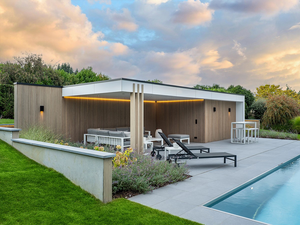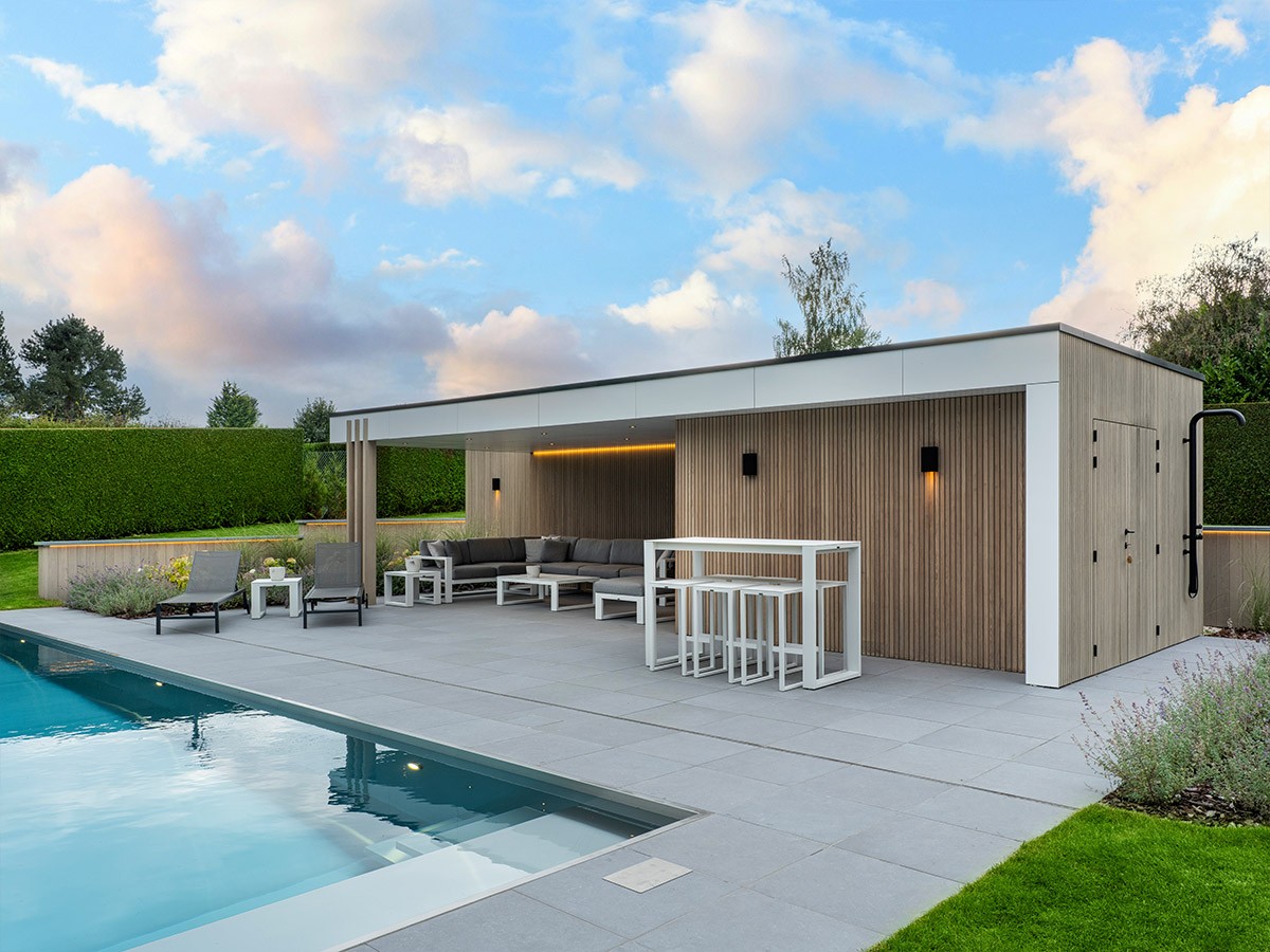 Modern poolhouse met verfijnde belijning